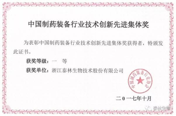 本次評(píng)選活動(dòng)共評(píng)出技術(shù)創(chuàng)新先進(jìn)集體18個(gè),技術(shù)創(chuàng)新先進(jìn)個(gè)人26名,科技進(jìn)步獎(jiǎng)3個(gè)。泰林生物作為微生物檢測與控制領(lǐng)域的專業(yè)公司,研發(fā)制造創(chuàng)新水平得到了行業(yè)協(xié)會(huì)領(lǐng)導(dǎo)與專家的充分肯定,榮獲中國制藥裝備行業(yè)技術(shù)創(chuàng)新先進(jìn)集體一等獎(jiǎng)!
